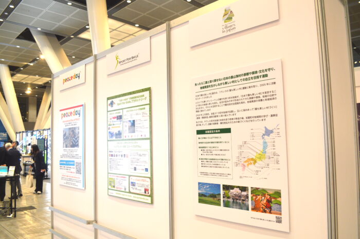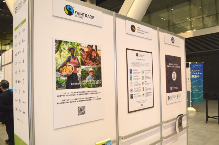 受付を通ると、まずはこのイベントのサポーター団体や企業の活動を紹介するパネルが展示されていました。サステナブルだけでなく、エシカル、フェアトレードなどのキーワードも目立ちます。