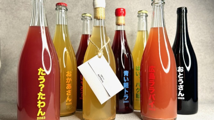 広島空港から車で約15分。四季折々のフルーツ狩りが楽しめる「スマイルラボ広島」内に誕生したナチュラルなワイナリー。2016年ぶどう栽培からスタートし、委託製造を経て2024年に自社での醸造を始めたばかりです。ぶどうの果実味が感じられる飲みやすいワインを目指しており、独創的なネーミングやジャケットも魅力。「スマイルラボ広島」の売店で購入できます。