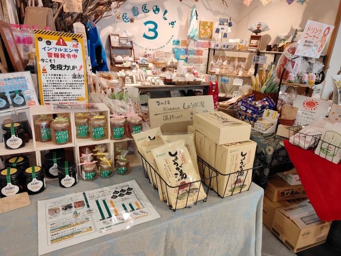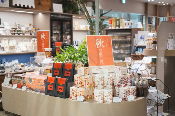 「このあたり(広島弁で「ここら」)で作られたものを販売する」がコンセプトのかわいいお店。店内には三原市とその周辺の旬野菜や果物、調味料などの加工品、手作り雑貨が並ぶ。3坪ほどの小さなお店ながら、木で作られたオブジェに商品が吊るされているなどナチュラルな雰囲気で、「選ぶ楽しさ」に溢れています。広島空港に隣接する八天堂ビレッジ「空の駅オーチャード」内にあるので、アクセスもgood。
