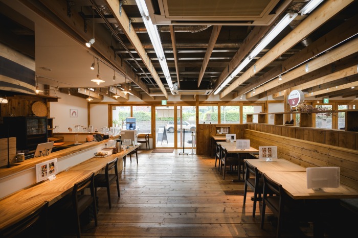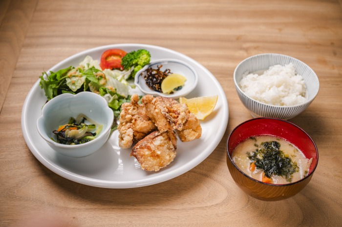 温もりが感じられる木の空間で、広島県北部・中国地方の自然派食品を使用した料理が楽しめます。メニューは定食スタイルが基本。お米は島根県柿木村で栽培された農薬不使用米。特製タレに漬け込んだ唐揚げ、漁港から直送された新鮮な魚をメインにしたおかずにお味噌汁がついています。調味料等は併設している自然派食品店「yotte-ne」で販売しているものを使用。子どもからお年寄りまで、安心して利用できるお店です。
