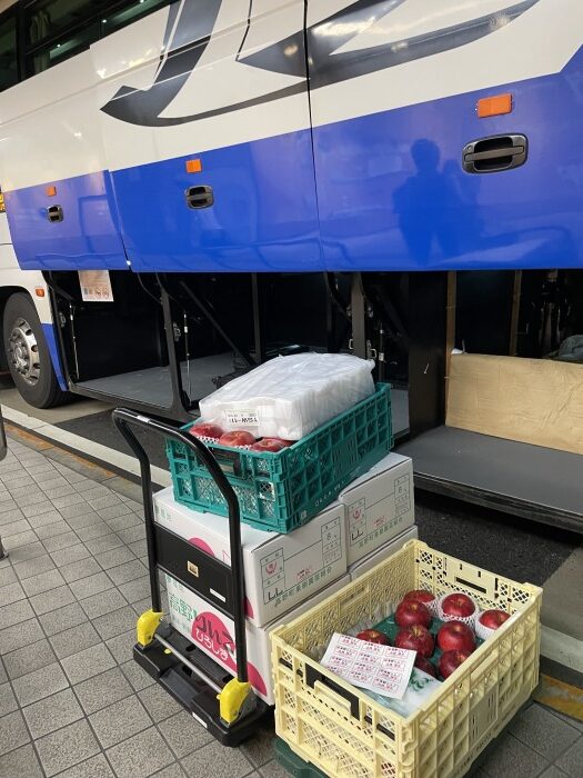 広島駅から路面電車で10分ほどの紙屋町。広島市民に親しまれる「そごう広島店」の地下1階に「やさいバス」のお店があります。やさいバスとは、その名の通り野菜をのせて走るバス。産地を「停留所」として出荷する野菜を積み込み、買い手の近くまで届ける仕組みで、全国にその取り組みが広がっています。広島のやさいバスは広島電鉄など複数のバス会社と提携。路線バスで広島県全域から運ばれてくる新鮮な野菜や果物が、市内中心部で手に入るのが魅力。思わずまとめ買いしたくなる!