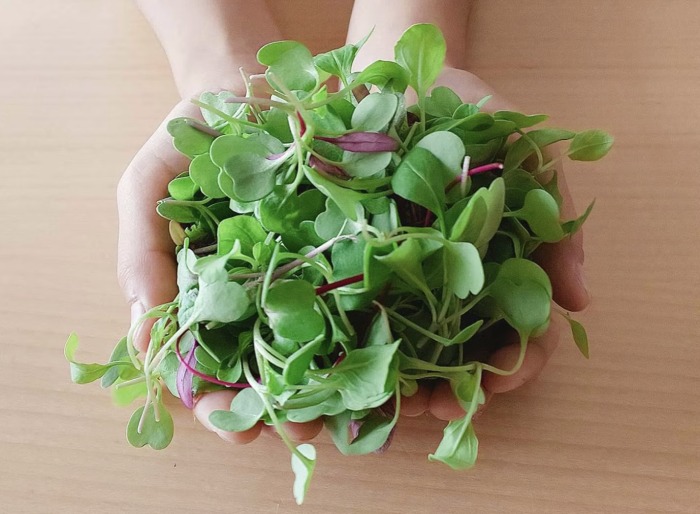 広島空港がある三原市本郷町の「にこにこレインボーファーム」で栽培された栄養価の高いベビーリーフ(野菜の幼葉)。沼田川が流れ多様な生物が生息するエリアで、薬に頼らず天候や気温をみながら一年中丁寧に育てられている。土耕ハウス栽培で一葉一葉味が濃く、力強い味と品質でベテラン料理人からも評価が高い。
